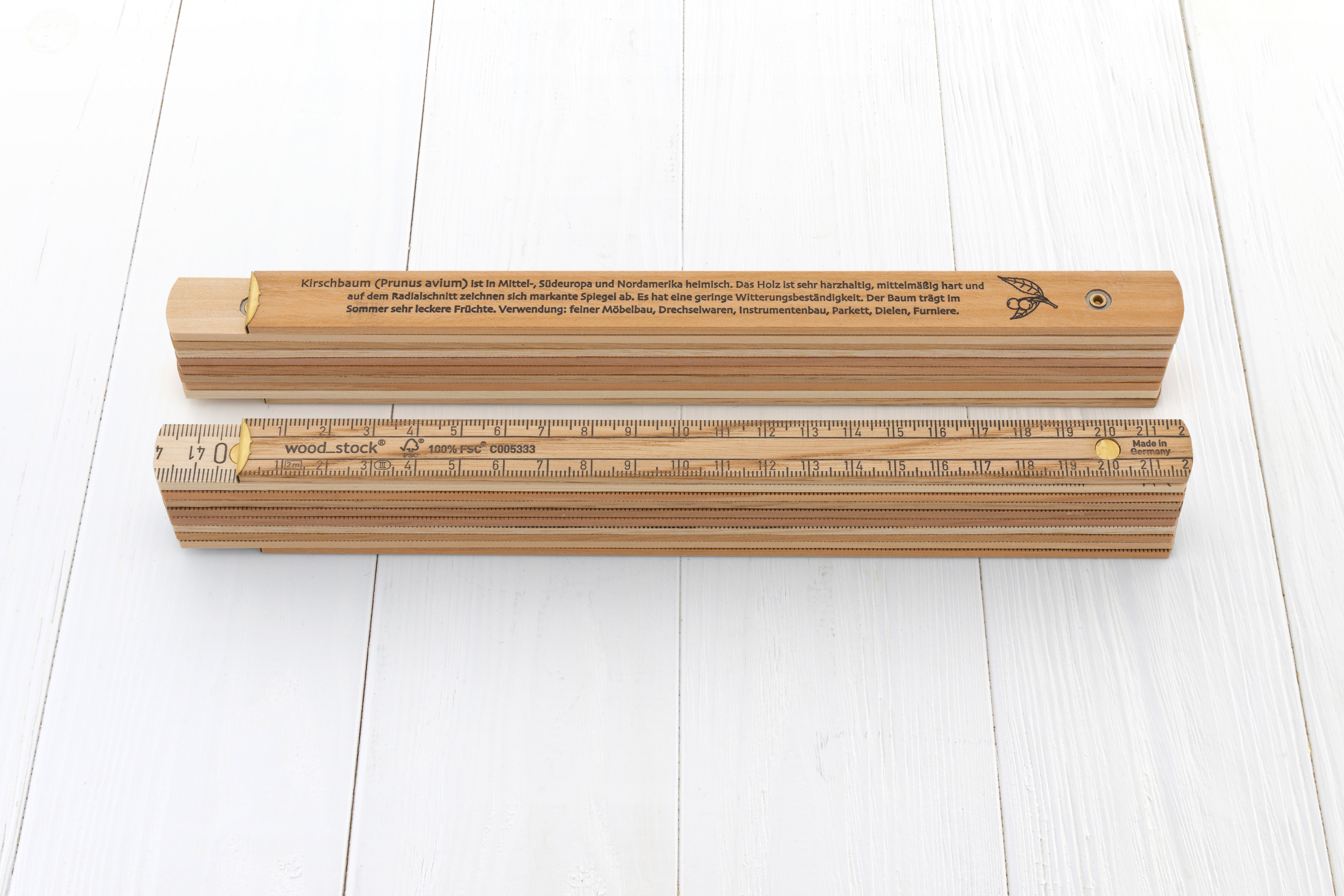 Der wood_stock® ist ein außergewöhnlicher Meterstab mit 10 Gliedern und besteht aus 10 verschiedenen Hölzern. Er ist ein Musterbuch für die Hosentasche, das Wissen über die Holzarten gleich mitliefert, der richtig gut aussieht. Alle wood_stock® Modelle sind FSC®-zertifiziert und werden ausschließlich mit Hölzern aus vorbildlich bewirtschafteten Wäldern gefertigt.